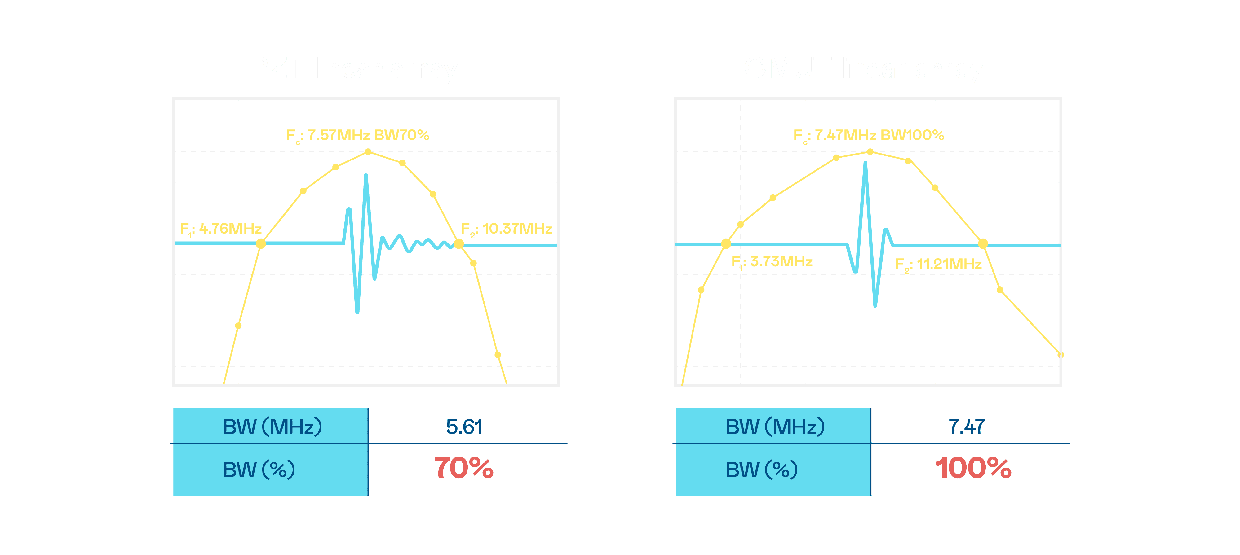 超音波影像的解析度高低,,,首先取决于探头能发出的讯号频宽。。。z6尊龙 CMUT 可提供高清晰的超音波讯号,,,提供高频宽、、、、高灵敏度、、、、影像纹理细节更高的超音波影像,,,,协助医护人员缩短影像判读时间及利用精准的医疗影像进行诊断。。。。